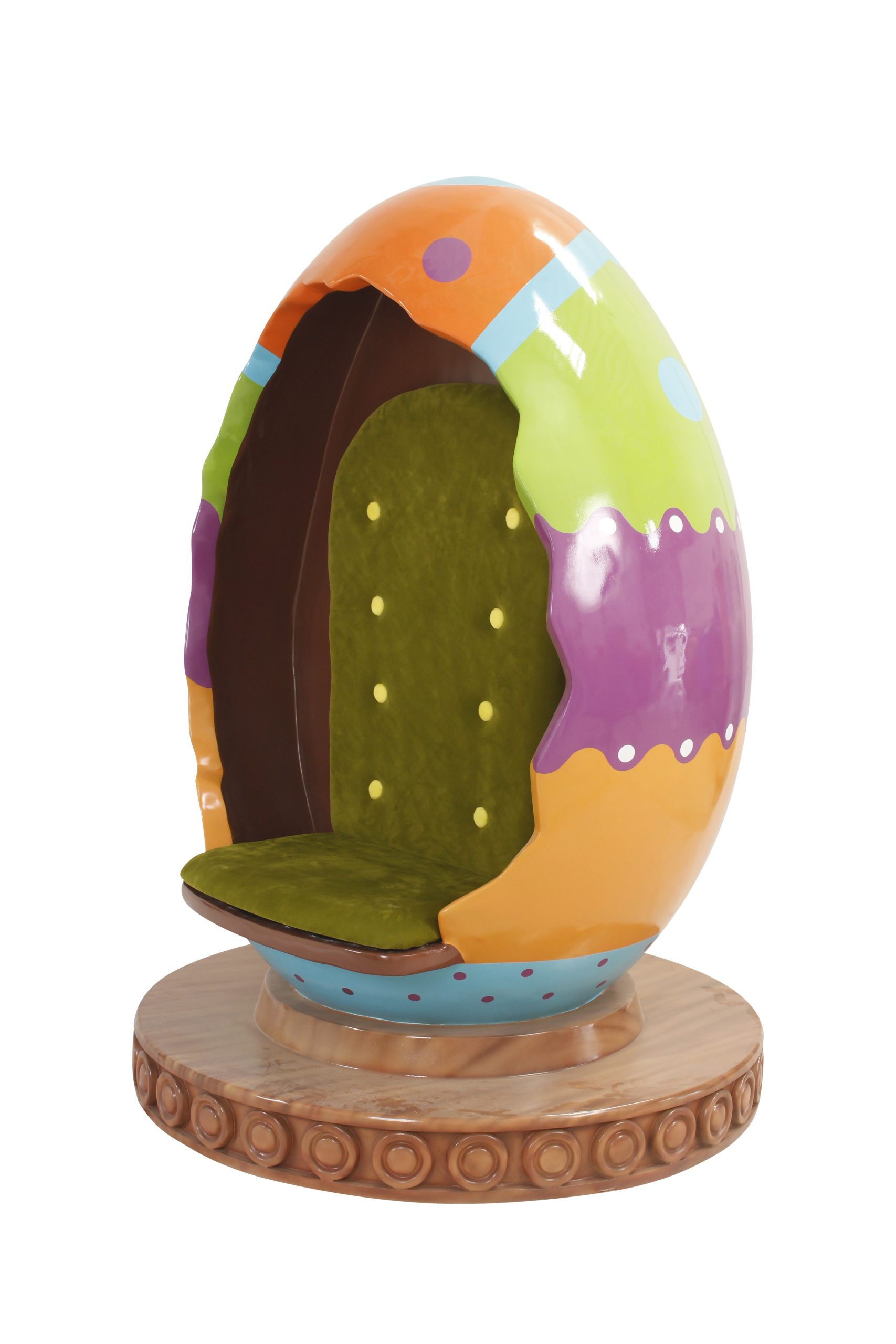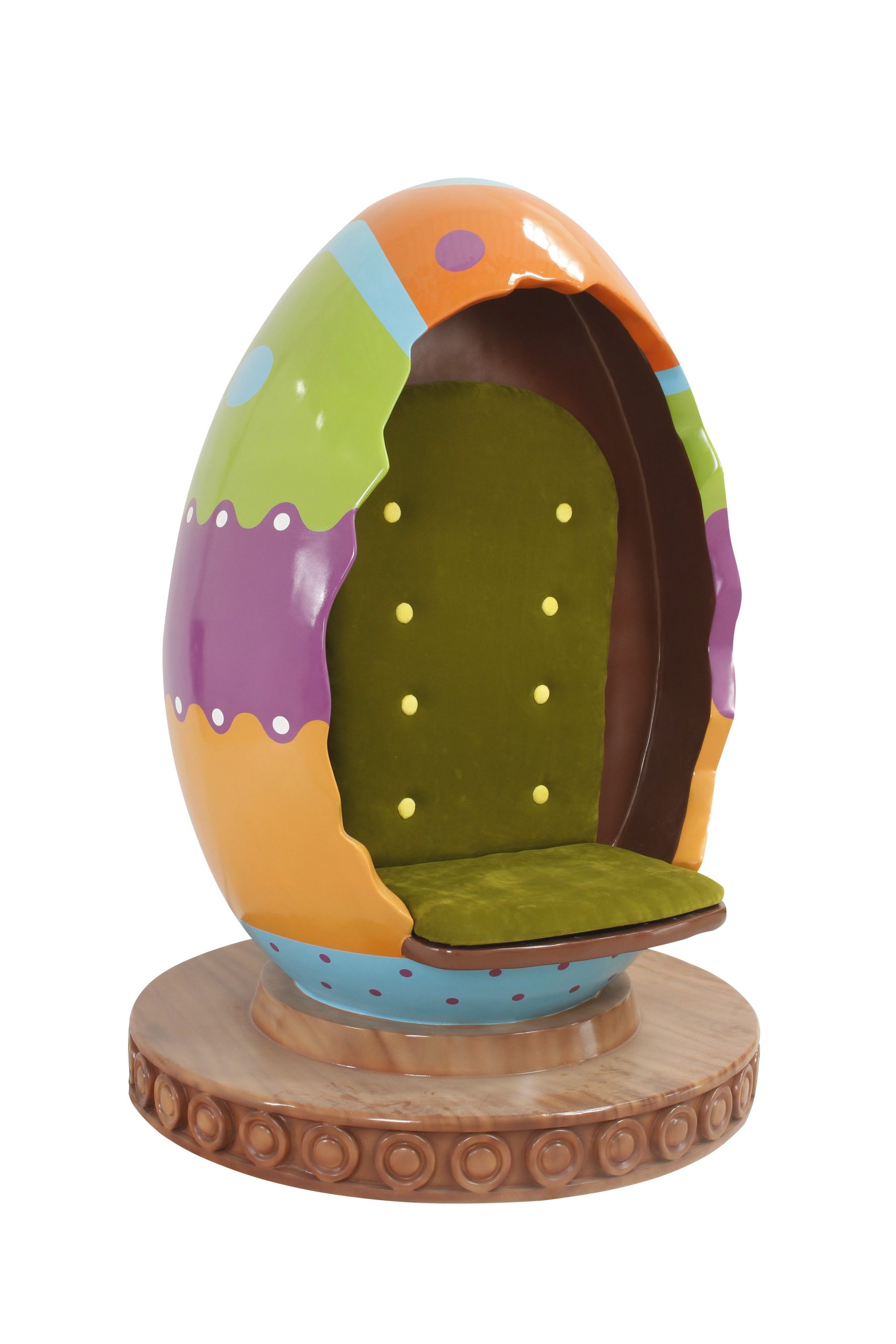 The Easter Egg Chair prop is a functional and festive addition to your Easter display. This life-size chair, shaped like an Easter egg, is not only a unique décor piece but also a practical seating option.