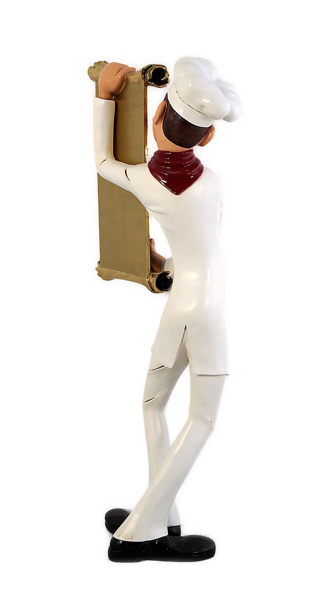 This ‘Skinny Chef with Menu’ statue, is the perfect addition to a restaurant or cafe display, acting as an alternative to a traditional menu board. The style of this prop would also suit butcher shops, patisseries, cookery schools, and grocery shops.